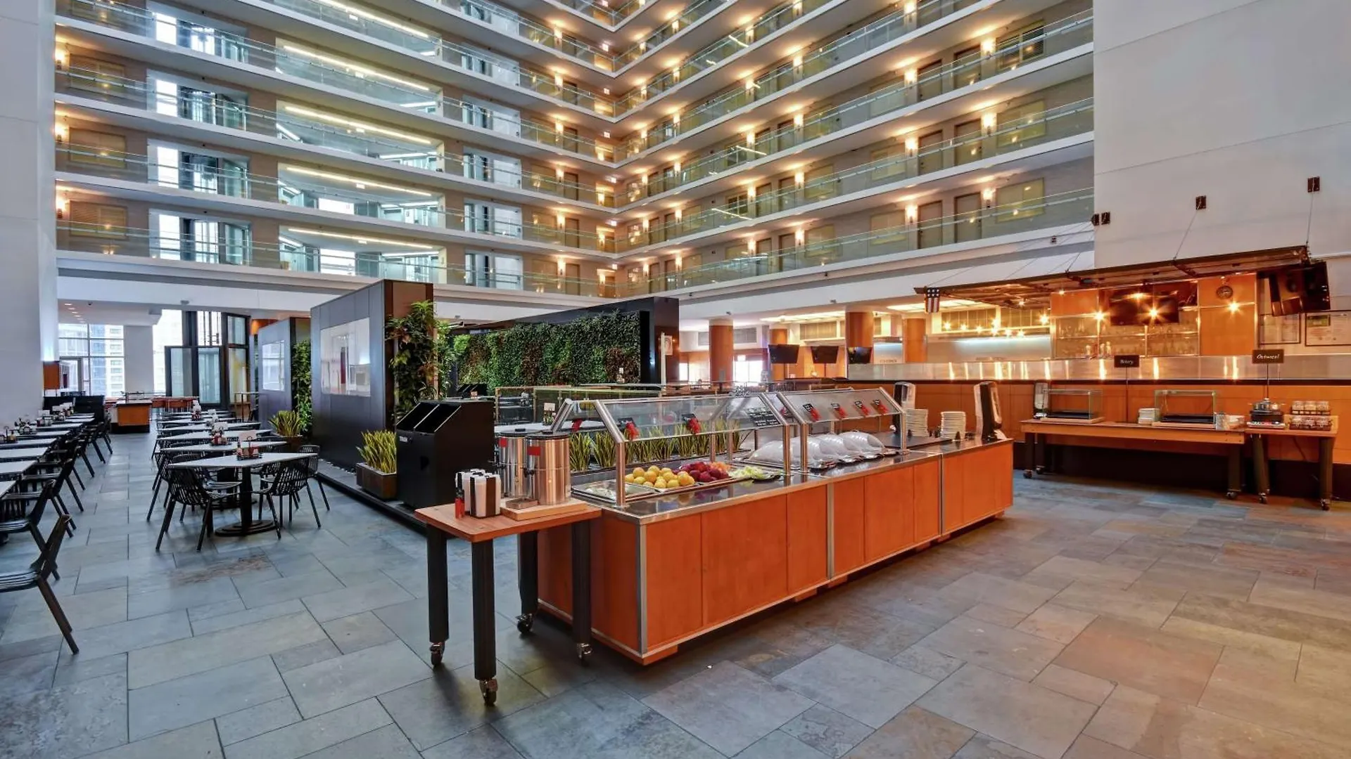 The Embassy Suites By Hilton Chicago Downtown Magnificent Mile, a 4-star property, offers guests a truly unique and memorable experience. At 511 North, guests can indulge in dishes inspired by the fresh herbs grown in the Sky Garden, perfectly paired with handcrafted cocktails. The culinary team, led by Executive Chef Robert McKenzie, prepares selections that highlight local color and flavor, delivering them with the high level of service that customers have come to expect. The garden venue in the lobby atrium adds to the hotel's charm, featuring 1.000 live plants on its walls. After a day of exploring the nearby restaurants and shops, guests have the option to unwind in the comfort of their suite and experience fine dining at its best through room service. Additionally, The Embassy Suites By Hilton Chicago Downtown Magnificent Mile offers a complimentary daily breakfast, conveniently located just two blocks away from the hotel.